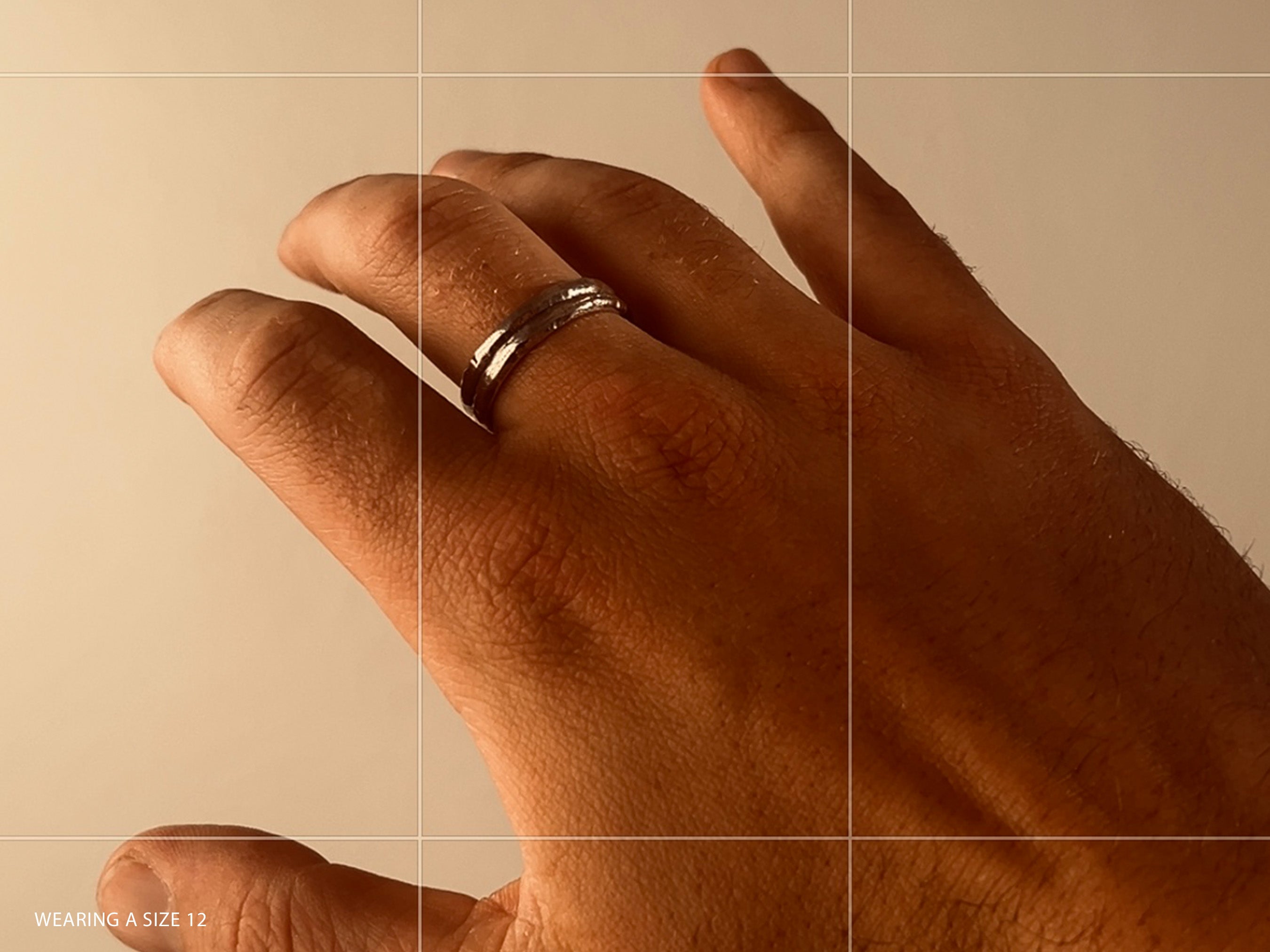 The organic texture and bold, double channel design make this sterling silver ring a statement piece for anyone who marches to the beat of their own drum. Whether you're exploring the great outdoors or navigating city life, the Trail Ring adds a touch of raw sophistication to your look.